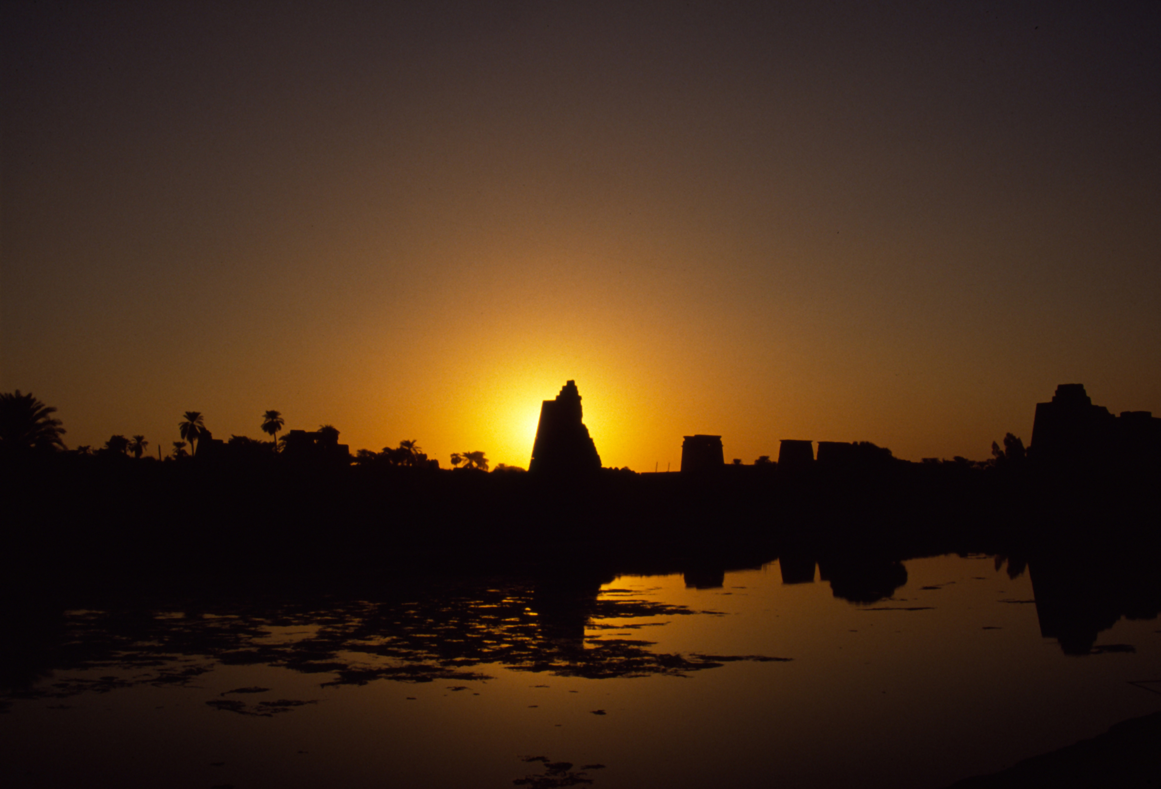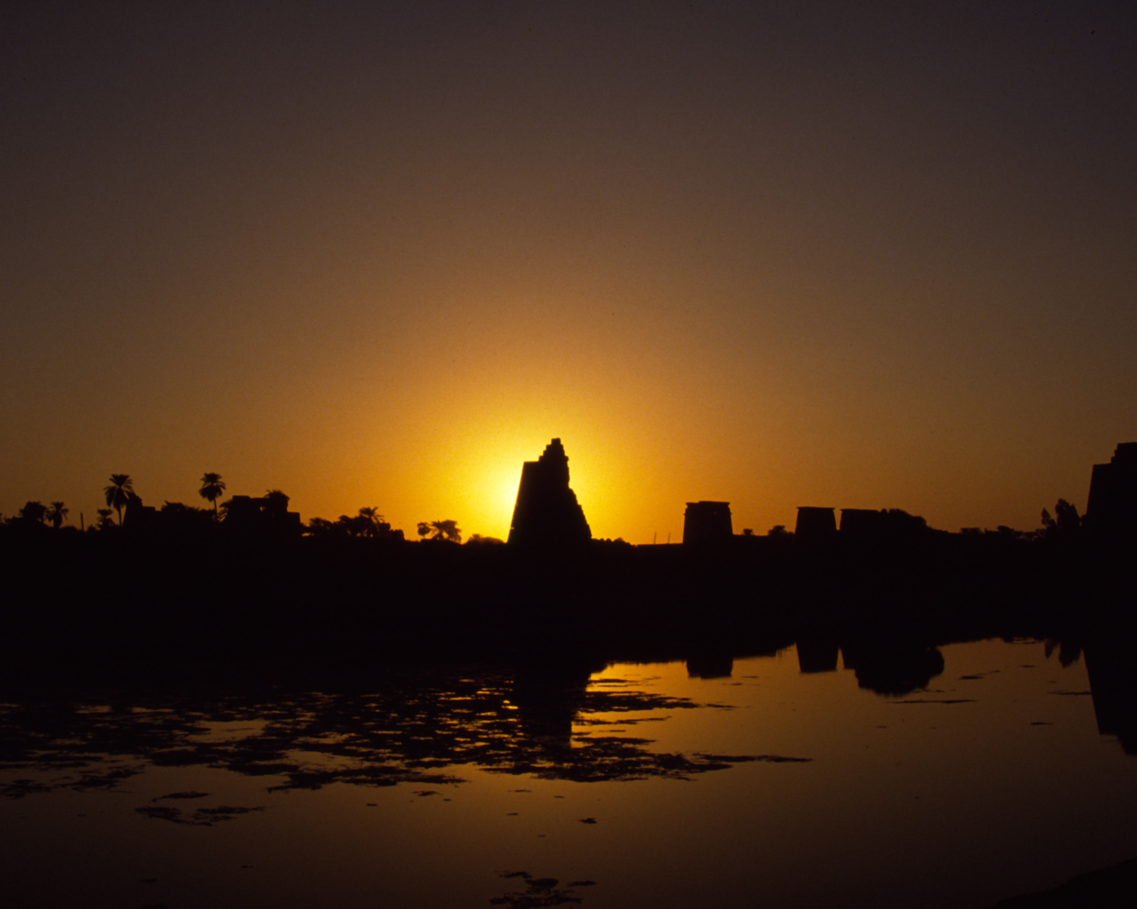 Coucher de soleil sur le lac sacré à Karnak (Egypte)
