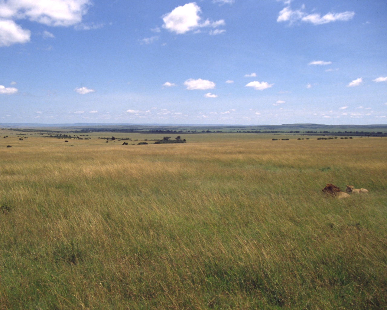 Out of Africa : couple de lions dans la savane de Masai Mara (Kenya)